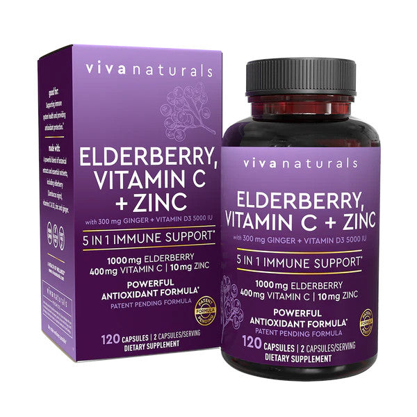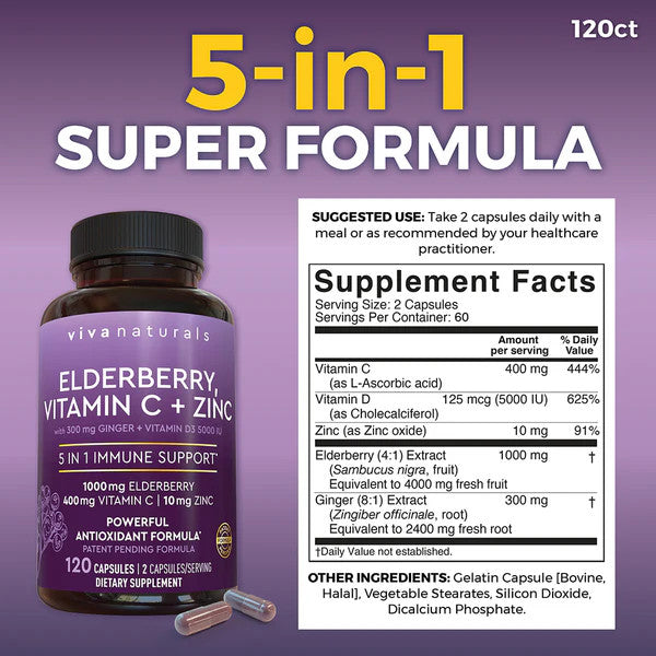 エルダーベリー、ビタミンC、亜鉛等、健康な免疫システムのための5つの強力な成分を1つのサプリメントに配合。