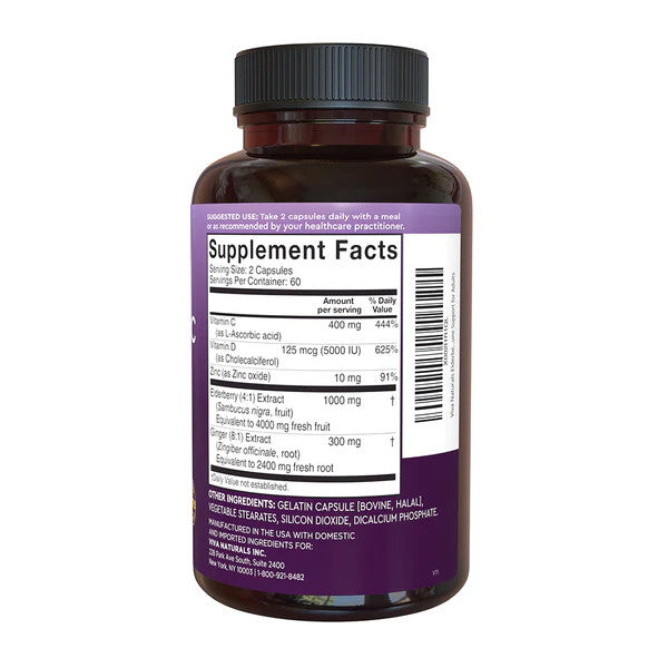 抗酸化作用のあるエルダーベリーに加え、ショウガ、亜鉛、免疫をサポートするビタミンCとD3を配合しています。
