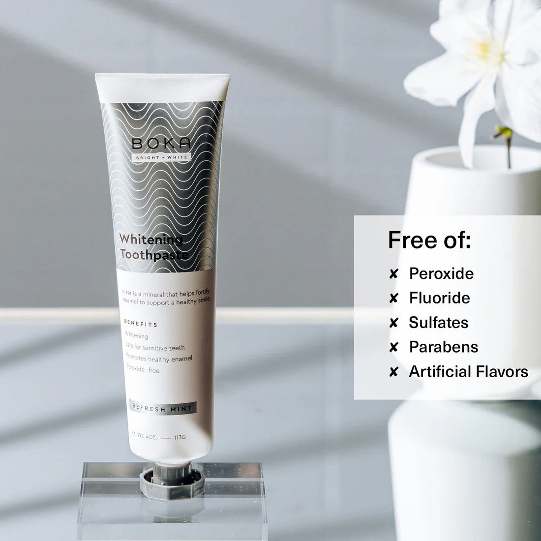 ※ホワイトニングは、歯を明るく白くする優しい成分を使用しています。重曹が表面の汚れを溶かし、ココナッツオイルが徐々に歯茎と口を保湿しながら明るくし、ナノハイドロキシアパタイトが歯を強く白くします。敏感な歯に最適です。